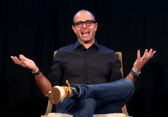 Prodiuseris Damonas Lindelofas kalba scenoje per „Damon Lindelof“ ir Mike'ą Schur
